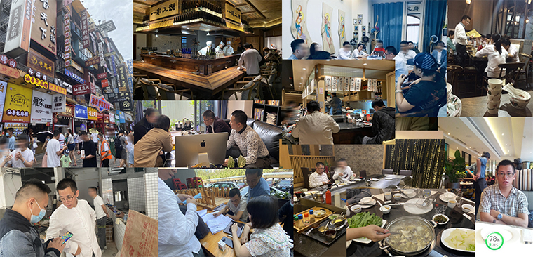 還好蘩樓團隊能理解我們的工作模式,認同我們的設計理念,尊重我們的作業流程。在我們為期半個月的市場調研及廣式茶樓同行,出產地廣州西關走訪后,才有了明確的定位人群,模式定位,出品特點,服務形式等初步的框架認識,才逐步對蘩樓的品牌歷史形成基本的認知,這時再進行“頭腦風暴”表達各自設計看法才更有了更多實際依據。隨著項目推進,與甲方的不斷溝通交流,持續的學習相關知識,我們才逐步提煉出品牌獨有的視覺語言,并把對品牌的理解進行轉譯,形成了視覺語言應用如:標志符號,品牌故事,VI視覺、海報菜單及品牌的空間形象實體呈現。