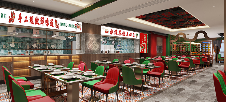 工作內容:廣式點心茶樓空間裝飾裝修設計、廣式點心茶樓門頭招牌設計、廣式點心茶樓后廚明檔設計,廣式點心茶樓空間軟裝設計